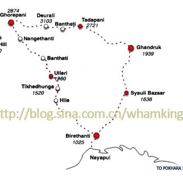 登山杖要带但不建议从国内带过去,因为必须要托运。Ghandruk对面的风景。网上找的路线图山上的排球Ghandruk对面的风景【poonhill徒步经验总结】