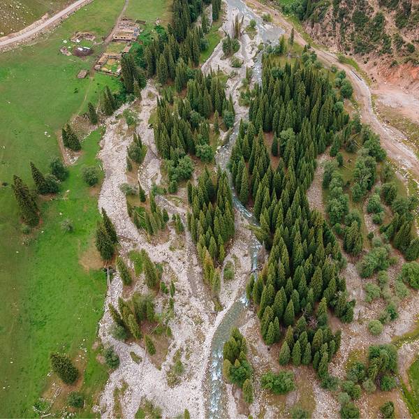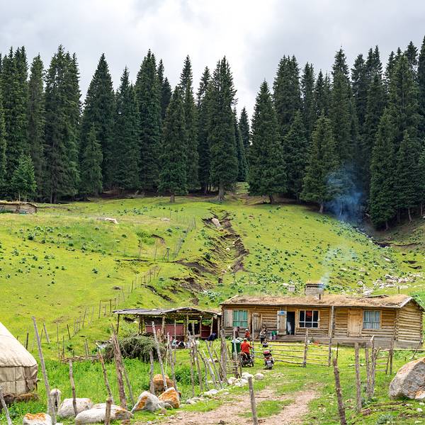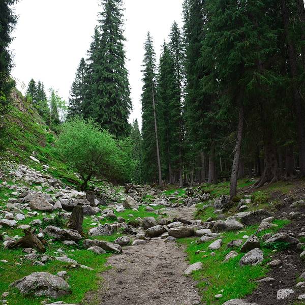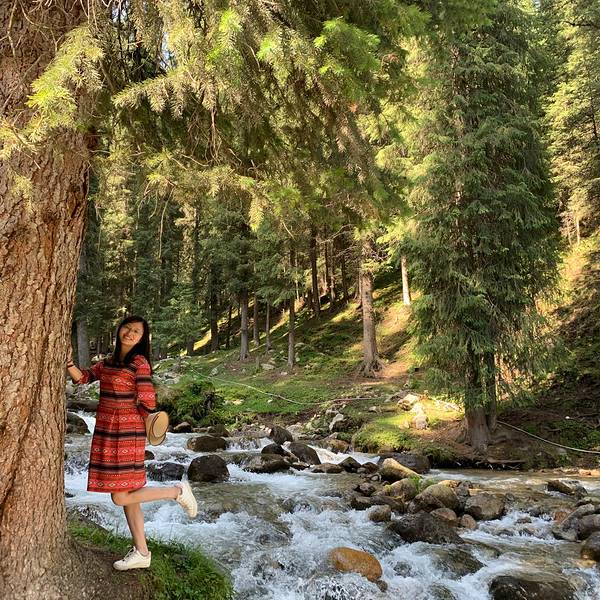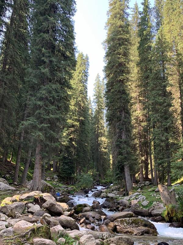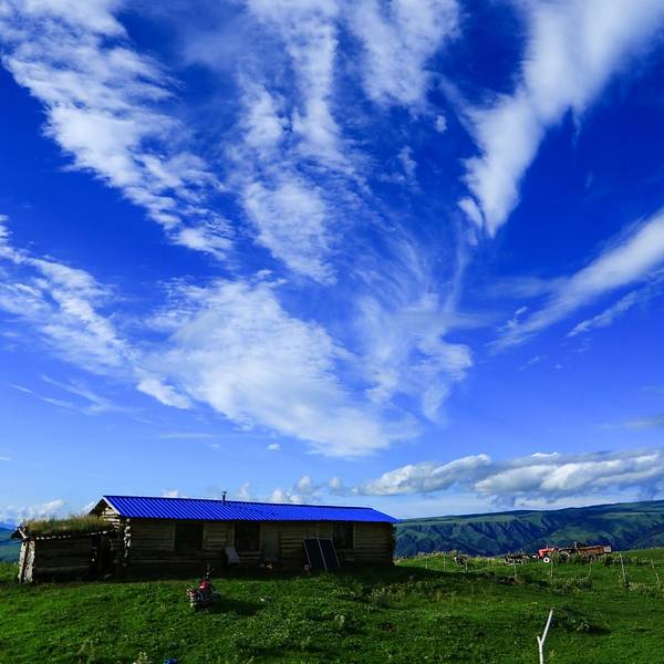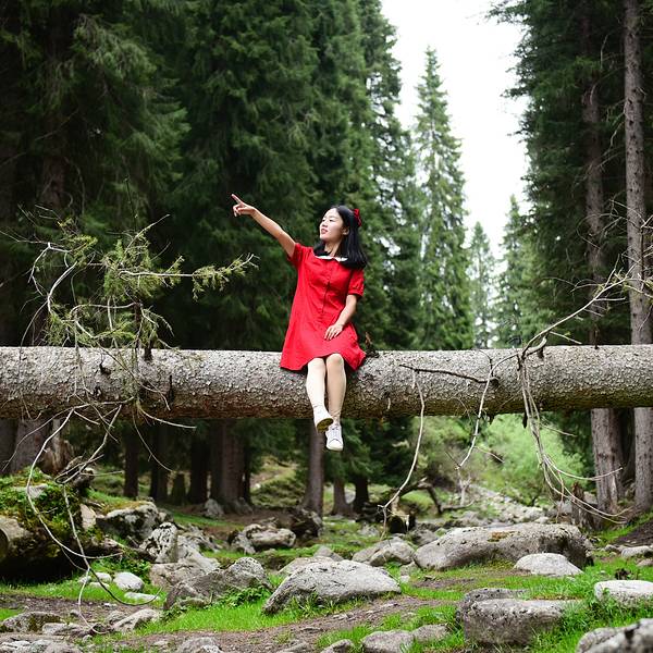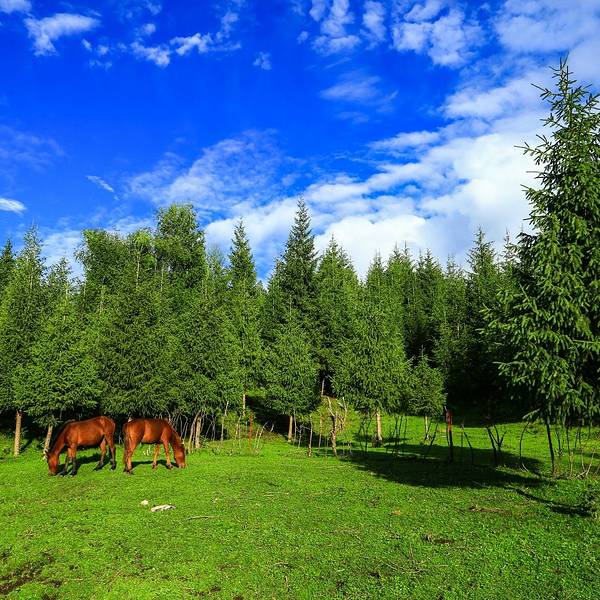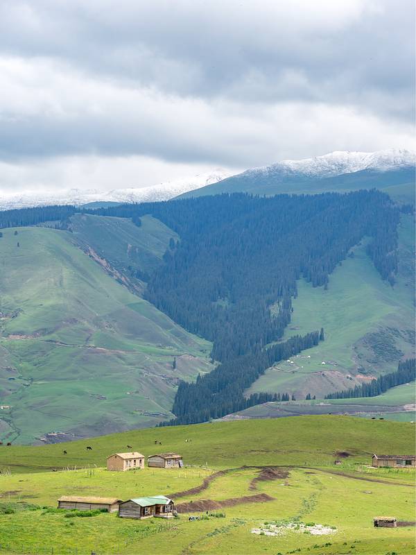 仁慈的大自然总是善于恩赐我们最好的风景。希望你们有机会一定要来体会这里的神奇风采琼库什台村,四面环山、依水而建,是伊犁游牧民族定居最早村落之一。同时也是乌孙古道的北入口、丝路古道的重要驿站,这里的房屋由整根原木搭建,不用一颗铁钉,是至今伊犁河谷保存完好的一个木结构建筑群。没有...琼库什台村,四面环山、依水而建,是伊犁游牧民族定居最早村落之一。同时也是乌孙古道的北入口、丝路古道的重要驿站,这里的房屋由整根原木搭建,不用一颗铁钉,是至今伊犁河谷保存完好的一个木结构建筑群。没有人工侵染的这里,随便一拍就是一个屏保,在城市中被尘埃污染的双眼在这里得到了净化,入目一片的绿色充斥了心间,灵台顿时一片清明,从林间吹来清爽的风掠过草原,吹走我心头的浮躁。牛安详的卧在山坡上,享受着安宁,尾巴摇摇晃晃驱赶着蚊虫,马儿有的躺着,有的低下高贵的头颅,吃草。一切都那么宁静,像一幅画一样映在每一个来到这里的人的心上,在此后经年都不会忘记,也许在繁忙工作间依旧可以把这幅画从回忆中挑出来让身心放松。比起西藏的神秘,海南的热情,这里更让人放松,试问,谁不想在历经繁华后到这里度过余生呢?走着走着,我们来到了乌孙古道。乌孙古道以琼库什台村为起点,这里是世界著名的“丝绸之路”之一,是贯通天山南北的重要通道,更是牲畜转场通向伊犁州第二大远冬牧场的必经之路,也是世界各地徒步爱好者竞相奔赴的探险乐园。草原是辽阔的代名词的话,这里就是幽静,高大的雪松占领了这里,挡住了想要远眺的视线,也挡住了来自草原的牧群牛羊的吵闹,河水叮咚代替了咀嚼青草的声音,虽然这里不是竹林,却让我想到了《小石潭记》中“隔篁竹,闻水声,如鸣珮环,心乐之。伐竹取道,下见小潭,水尤清冽。全石以为底,近岸,卷石底以出,为坻,为屿,为嵁,为岩。”景色大相径庭,意境却神似,四面雪松环合,寂寥无人,与柳宗元所感的凄神寒骨,悄怆幽邃不同的是,这里只带给人内心的安宁。望不到尽头的小河,堆积在岸的石块,郁郁葱葱的树林,好像在林间藏着一些生灵偷偷的看过来,也许,真的有个守护神在默默守护这一方净土,也在默默保护路过的人类。仁慈的大自然总是善于恩赐我们最好的风景。树木的年龄已经不可猜测,唯有从不可企及的高度才能窥探到一些它们的历史。人不同,树相似,还站立的树看着倒下的老朋友无能为力,倒下的大树横亘在路中间,即使这样也不忍心挡住人的去路,反而给这里增添了一处绝佳的风景。坐上去的我依旧那么渺小,可能我的人生也不过是它一生的一小段。想到现在人类对于自然的破坏,可能人也早就忘记了自己也属于自然。放眼望去,看不到其他活物,闭上眼睛,却能感受到生命的衰老重生,更替不息。