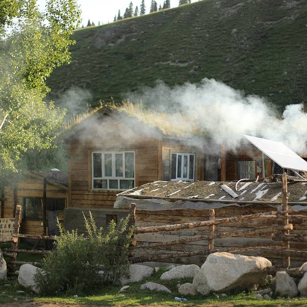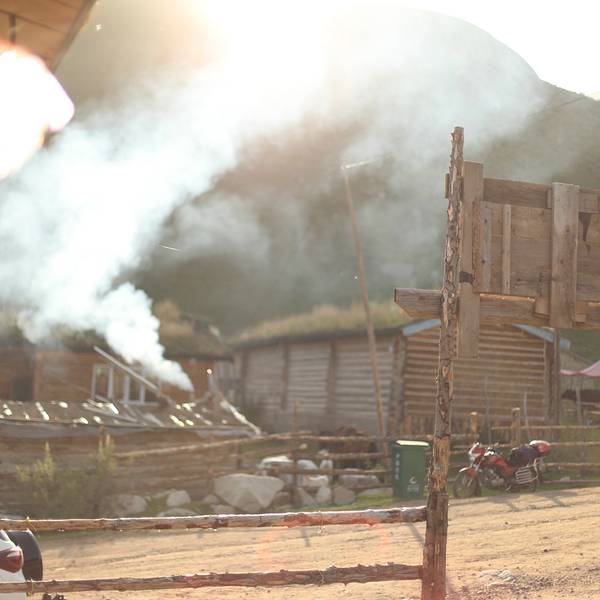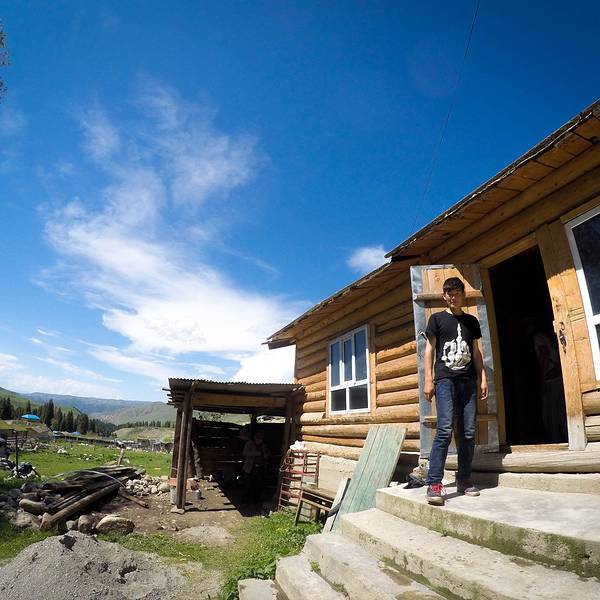 琼库什台村绝大多数的民房都是木建筑,有的房子是由整根原木搭的,有的房子是将原木从中间一分为二,通过掏、榫、拱等各种工艺搭起来的。