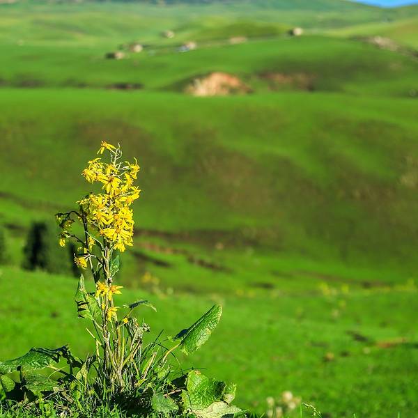 琼库什台,在哈萨克语中是“大平台子”的意思。 琼库什台沟壑纵横,在草原中颇具阳刚之美,台地上纵切出无数的沟壑,将平静的草原勾画的像大海里掀起的波浪。 游客可以在这里看到蓝的天、白的云,白云下面是银色的雪山、墨绿的杉林、淡青色的草原和五颜六色的花海,几种色彩层次分明,色调和谐,构成一幅天然的草原美景。如果换一种说法,也可以说成:蓝天白云下是雪山,雪山杉林下是琼库什台,琼库什台下就是喀拉峻。 琼库什台草原上的琼库什台村是个哈萨克牧民村庄,它是天山半坡的一个小村,乌孙古道的北入口,以前没人知道它的存在,自从天山的鲜花显现于世,它的名字才被人了解。琼库什台几乎所有的民房都是木建筑,有的房子是由整根原木搭建,有的房子则将原木从中间一分为二,通过掏、榫、拱等各种工艺搭起来的。村庄四面环山,房屋依水而建,村里人畜饮水及生活用水均来自库尔代河,河谷较宽,常年水流不止。