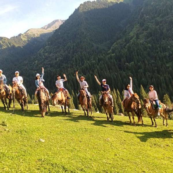 我们从特克斯八卦城出发行车3小时下午2:30到,听了民宿老板的建议导航到琼库什台目的地之后,再问路,我们到了地标石头打卡,问管理交通的警察叔叔,开车过桥直奔后山,骑马,因为有骑马的经验,我们选择最长的...我们从特克斯八卦城出发行车3小时下午2:30到,听了民宿老板的建议导航到琼库什台目的地之后,再问路,我们到了地标石头打卡,问管理交通的警察叔叔,开车过桥直奔后山,骑马,因为有骑马的经验,我们选择最长的线路到高山湖泊往返5个多小时,沿途景色,村庄、山间、峡谷、原始森林、悬崖、河谷、雪山、湖泊、涉水、盘山…高空的鹰、闲散的牛、高崇的云杉、吃草的马儿、雪山的雾气、融化成云朵的雪,丰富又刺激的行程,马儿路过一处悬崖,虽然路没有西藏的陡峭,但是一眼看不到底的山谷,也是很眩晕的,总之在马背上我是没敢看[石化],我喜欢骑马,所以还行吧,喜欢刺激的来[傻傻的]