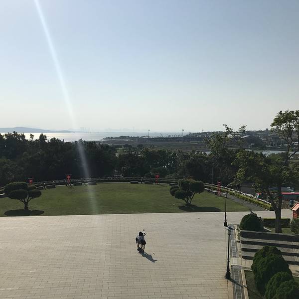 金门人说:“没到过莒光楼,别夸说自己到过金门”,所以我们最后一站就选在这里啦!小姐妹的老公帮我们三合了一张影,就是按了下快门还求表扬哈哈哈,是不是大家对自己老公的拍照技术都看得太低了?今天天朗气清,能见度好,登上莒光楼,对面隐隐约约显现的高楼,就是厦门……