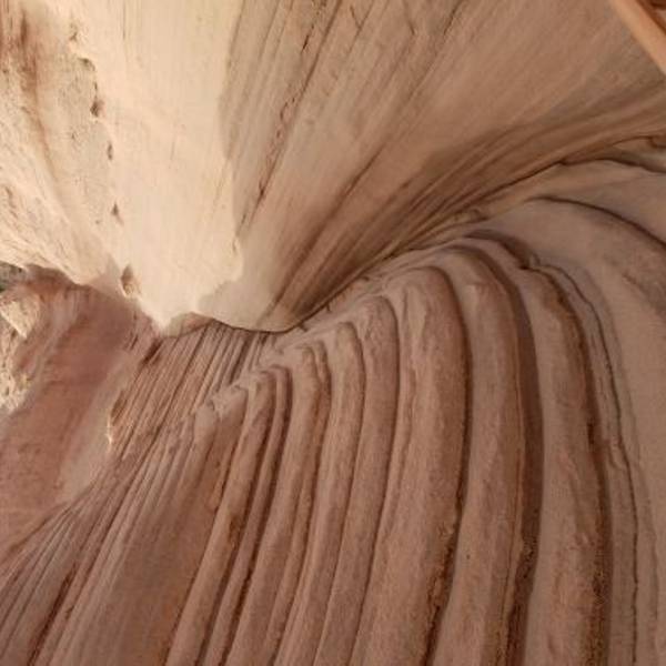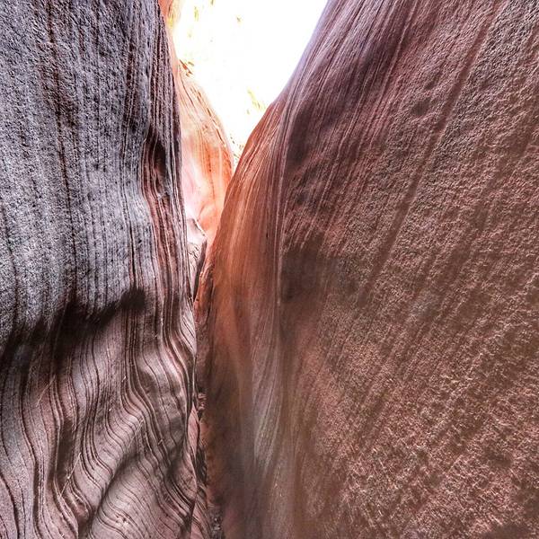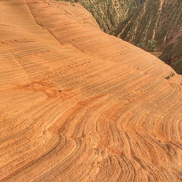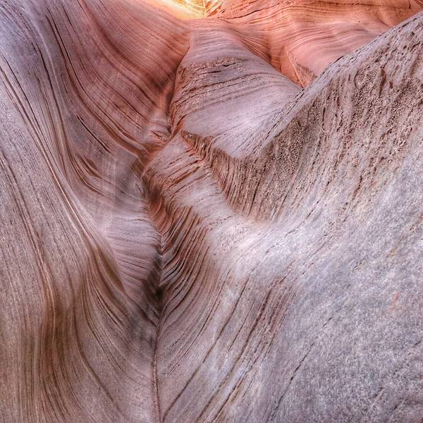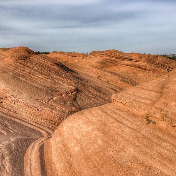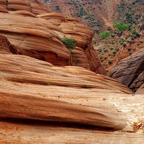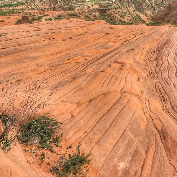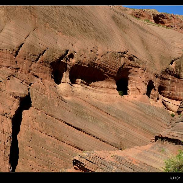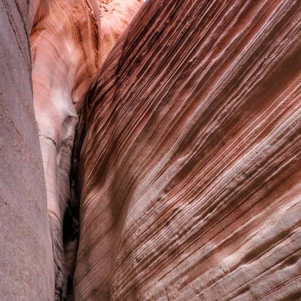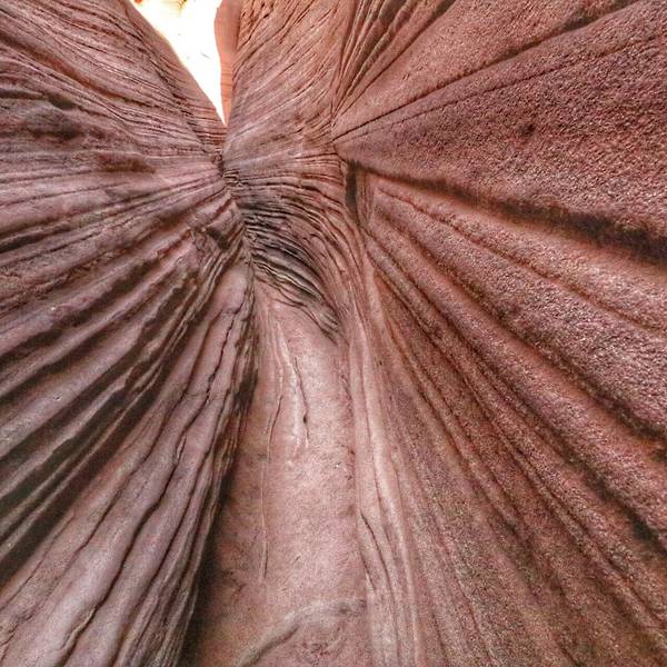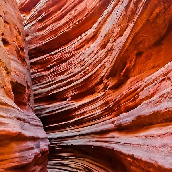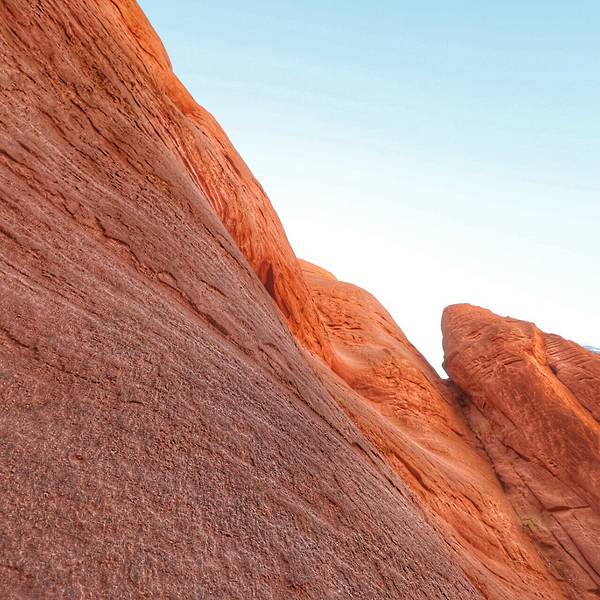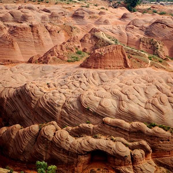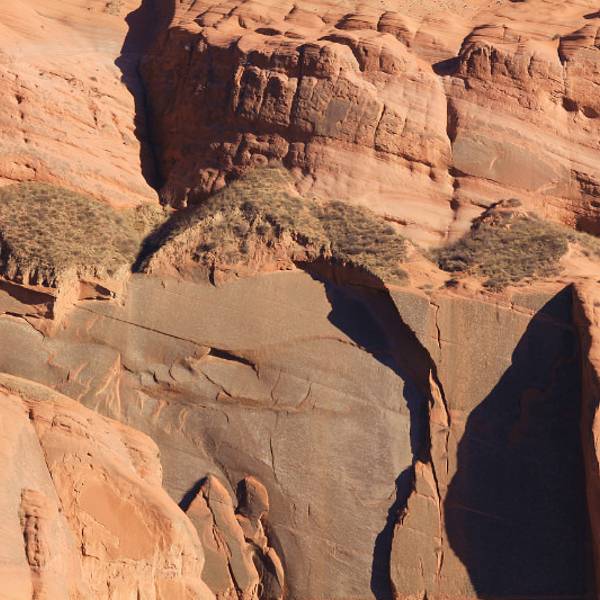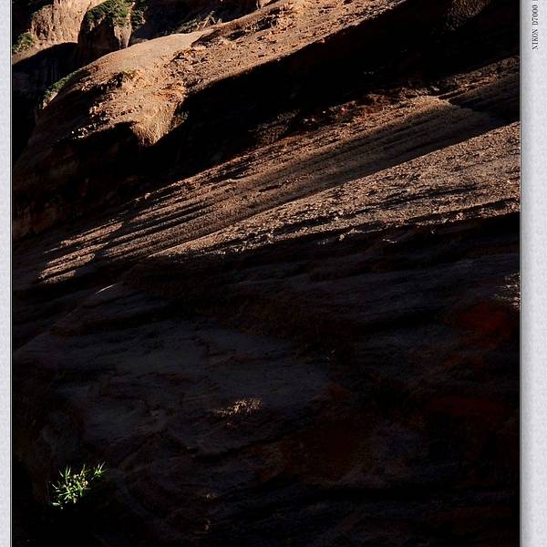 纹路的变化反映出每一层砂岩随着沉积矿物质的含量不同而产生的颜色深浅差异。红色主要是由铁和锰的氧化而产生,这些颜色不是一成不变的,往往在交错处和角落里形成更加复杂与抽象的图案。