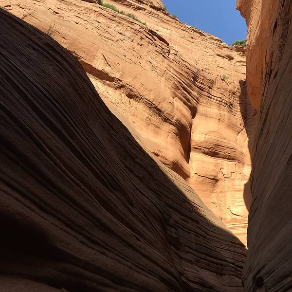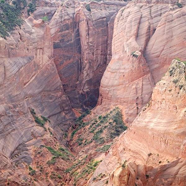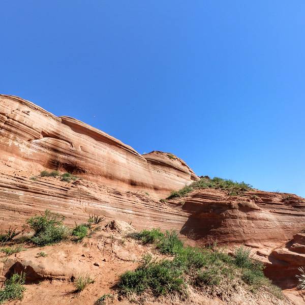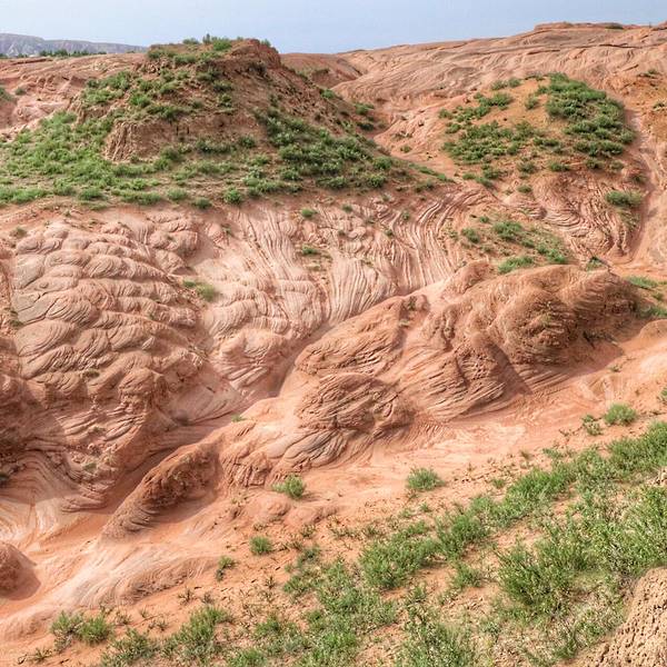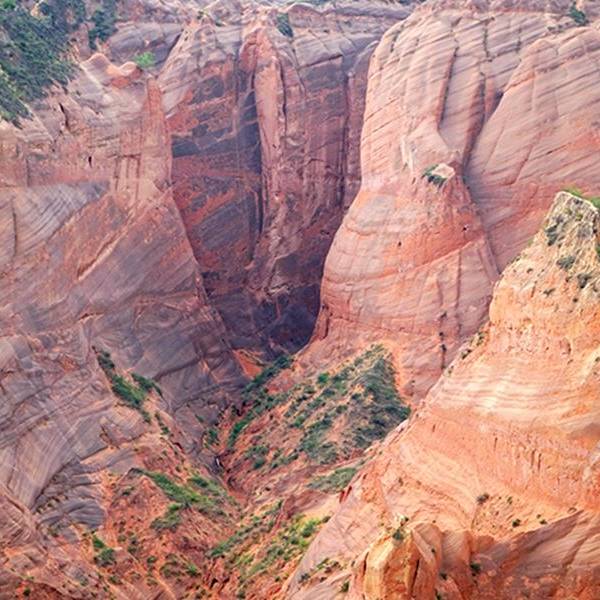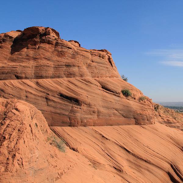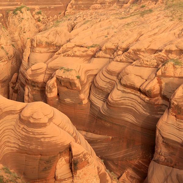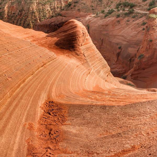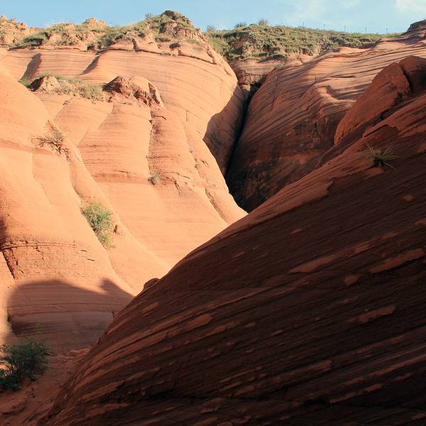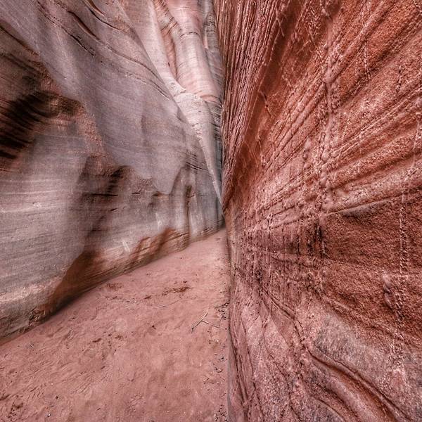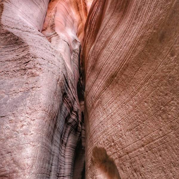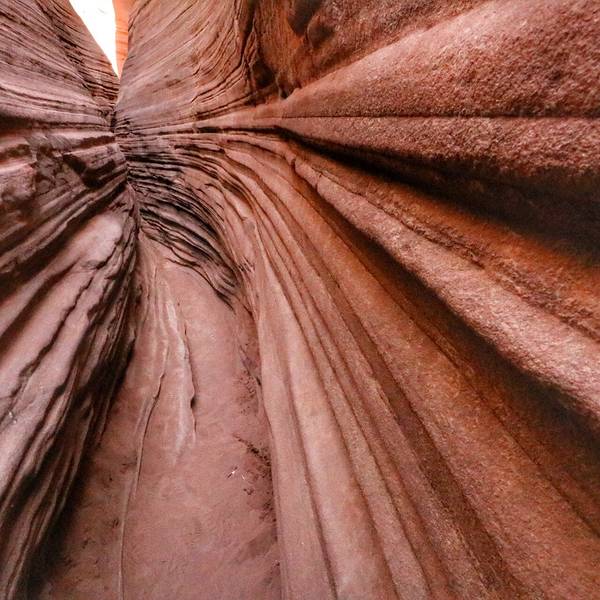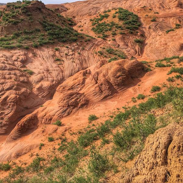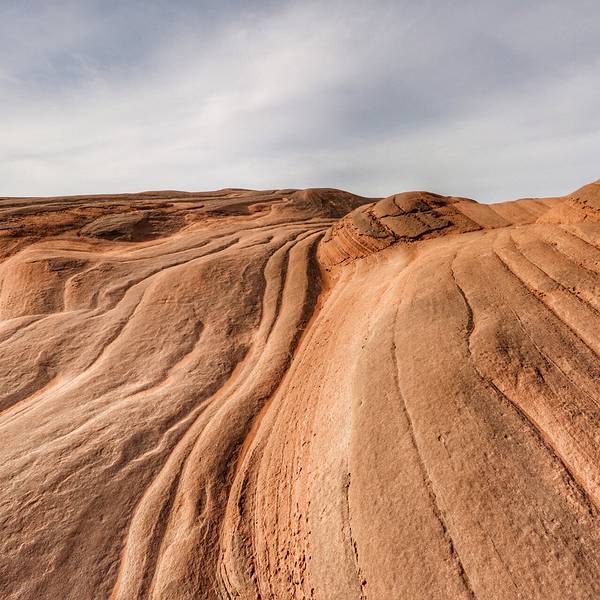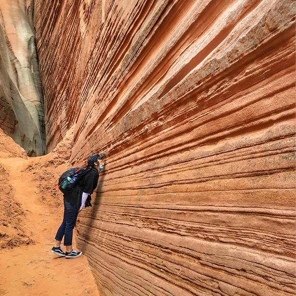 纹路的变化反映出每一层砂岩随着沉积矿物质的含量不同而产生的颜色深浅差异。红色主要是由铁和锰的氧化而产生,这些颜色不是一成不变的,往往在交错处和角落里形成更加复杂与抽象的图案。