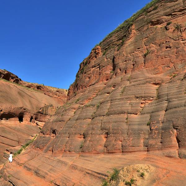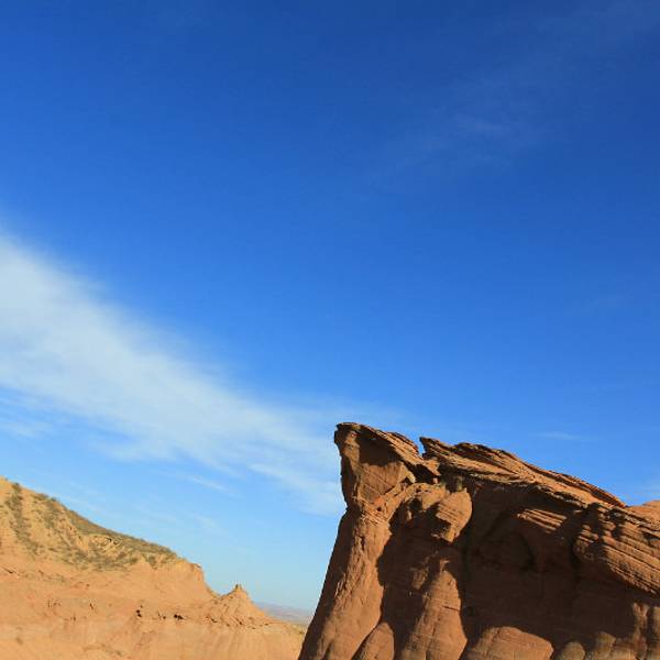 陕西靖边波浪谷属于丹霞地貌景观,这里的红色砂岩在风雨剥蚀下呈现出千奇百怪的姿态和色彩,不同角度...陕西靖边波浪谷属于丹霞地貌景观,这里的红色砂岩在风雨剥蚀下呈现出千奇百怪的姿态和色彩,不同角度、时间都会呈现不同的景色。天气好的时候,在蓝天的映衬下,红色的砂岩显得更加的雄伟。