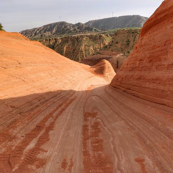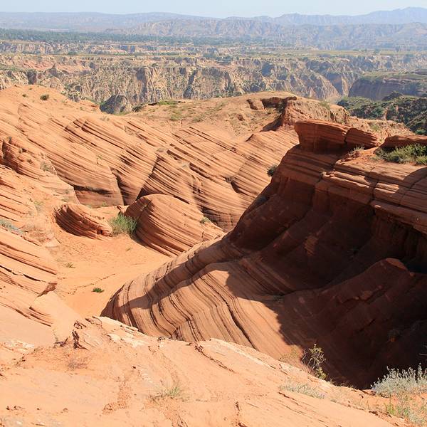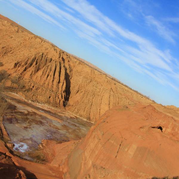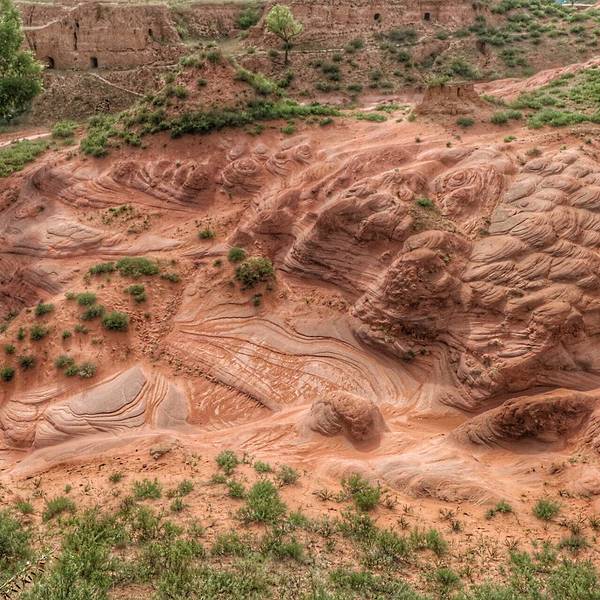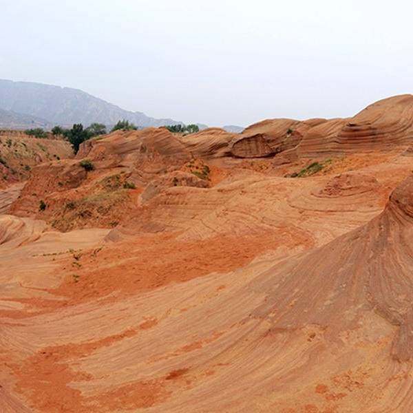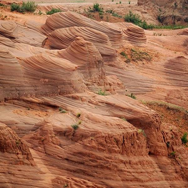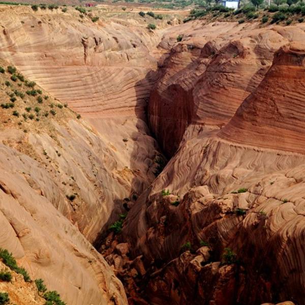 陕西波浪谷景区,又称靖边红沙岩峡谷,靖边龙洲丹霞地貌,位于靖边县东南22公里处龙洲乡的闫家寨子,俗称闫寨子。这里是一种红砂岩地貌,因岩砂上的纹路像波浪,被叫做"The Wave",即波浪。 上世纪80年代,人们在美国亚利桑那州和犹他州交界处发现了这里,神奇的外观和极高的科研价值使其成为了世界八大岩石奇观之一。而靖边的波浪谷也有着与美国波浪谷媲美的红砂岩峡谷。 中国靖边波浪谷和美国波浪谷的差距并不大,都是红砂岩地貌,这里的更加年轻,只有6000万年,很多砂土还没来得及凝固为岩石。