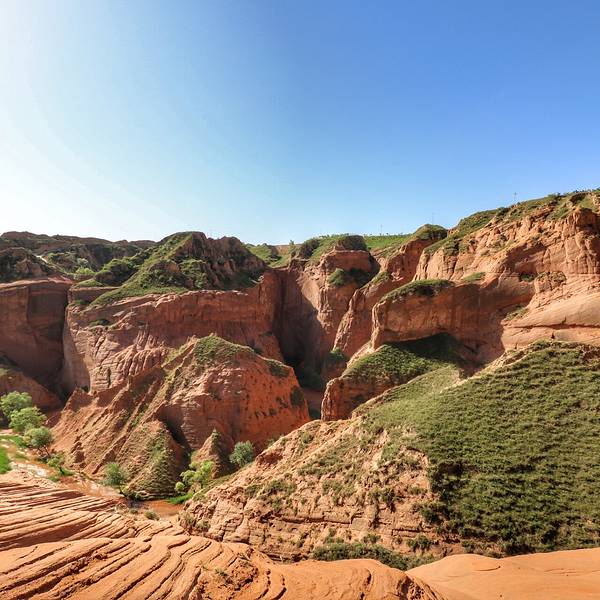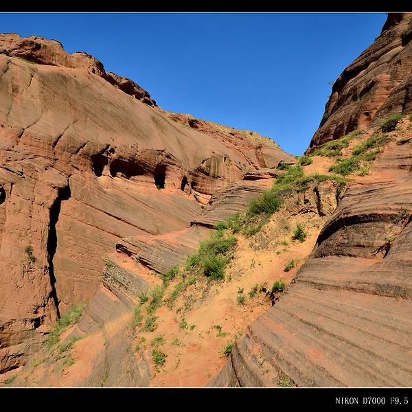 远方在哪里阳光太足 晒的流油最爱西北的这一抹蓝天你永远都想不明白为什么总是有人喜欢在这上面刻字感概大自然的神奇触觉感受傻缺摄影师这是翻过栅栏上去拍的 强烈建议不要这样干 我以后也不会翻了绿色植被衬托色彩更丰富深入A景区 有个叫“一线天”的地方 是两座山之间的一道狭长的小空隙 只能容下一个人 走进去零距离接触这些线条 感觉棒极了时间的指缝 hey等等我susan姐说你这张二死了 可是我喜欢的不得了我不管我最酷其实都一样但是快门就停不下来清透一线天这什么构图一线天旁边还有一个幽深的峡谷同样惊艳对啊我舔了 味觉感受susan姐说你就不能正儿八经拍个照片A区最里面是这样的有一个绿色的湖 非常漂亮此时已经接近正午 毒辣的太阳晒的我们俩晕乎乎的 而且A区已经看完 所以决定回村里休息 下午凉快再去B景区真的太热了 双脚都是泡在汗里 实在难受 我就找了个没人的角落 换上拖鞋 后面挂两只咸鱼 一路上回头率百分百中午回去吃完饭冲个凉水澡小憩片刻 下午3点继续B区B区A区地貌以丹霞为主 B区才是真正的波浪谷 至于怎么形成的……………不如百度想象一下雨水冲刷亿万年 这可是时间的线条这照片都是我冒死拍的 下面就是悬崖 一不小心就滑下去了天地间只有我这一条大红裤子的距离不装不行B区看完大概下午6点 回去休息 第二天CD区晚上吃晚饭出来遛弯 天突然阴起来 调调色 这傍晚的云也是美醉了一边溜一边听susan姐说故事 这就是在路上的感觉啊 展开