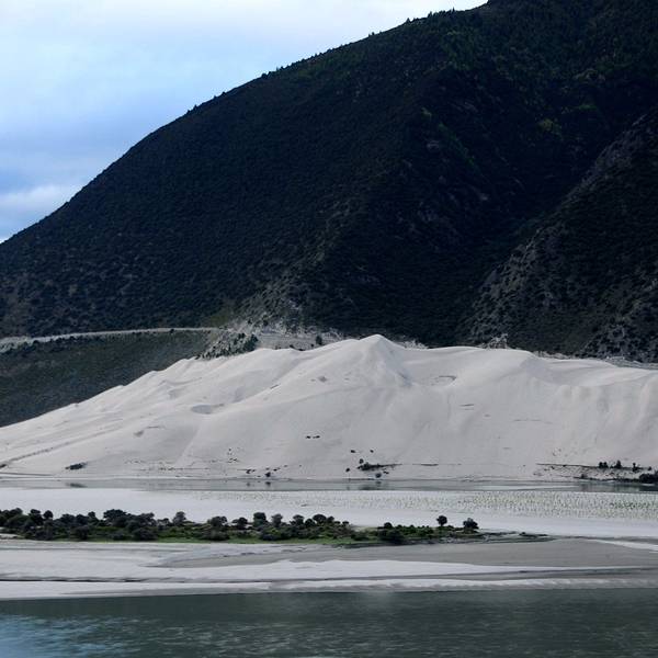 金骆驼 过桥后走的是尼洋河的右岸,可惜天色很晚了,否则,美丽的尼洋河风光是不容错过的。全天行程:293公里最后直奔直白村,进入这么一块立在小小空地上的石碑也要经过购物长廊。远处的雪山就是南迦巴瓦,可气的是旅游开发公司在最显眼的位置写上了公司的名字,让你稍不注意就给他打了广告还破换了画面。本想找一个没有...最后直奔直白村,进入这么一块立在小小空地上的石碑也要经过购物长廊。远处的雪山就是南迦巴瓦,可气的是旅游开发公司在最显眼的位置写上了公司的名字,让你稍不注意就给他打了广告还破换了画面。本想找一个没有电线杆没有遮挡的地方,找了一圈也没找着,却意外发现了一抹彩虹眼看天色有所好转可又苦于没法取景,只能拉近拍个局部。赶紧叫上扎西回到刚才的观景台,在车上发现南迦巴瓦似乎有那么一刻露了真颜,紧赶慢赶回到观景台还是没能看见全貌,不过就今天这种天气,能看见大部分南迦巴瓦已经非常满足了。回到取车的地方,扎西告诉我们经过落霞检查站后右拐过桥回八一镇更好走。路上看见了雅鲁藏布江边奇特的佛掌沙丘。过桥后走的是尼洋河的右岸,可惜天色很晚了,否则,美丽的尼洋河风光是不容错过的。