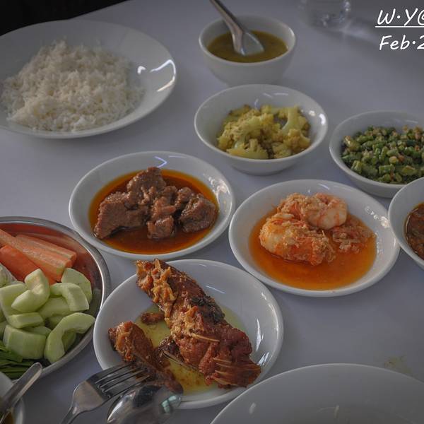 晚餐在离酒店很近,名声很响的Too Too Restaurant解决。点菜方式跟大学食堂一样,基本都是咖喱配上各种食材,配菜不要钱,但吃不惯。缅甸咖喱比较油,做法跟其他地方的不太一样,阿萌倒是吃的很欢,因为只要是咖...