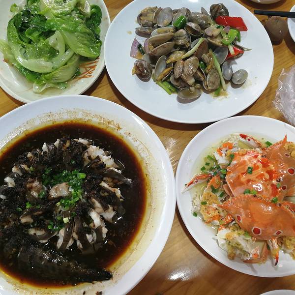 我们住的酒店在市郊,环境较好,适合自驾游客住宿。离酒店不远的清澜路,有一“环球码头”,是文昌市的渔港,也是文昌最大的海鲜市场。游客在这里可以选购新鲜价廉的海产品,送到附近美食坊或餐馆加工,是真正食客自助的海鲜美食大排档。我们下午4点多钟步行到环球码头,在市场里选购了245元的海鲜,有蓝尾虾、红花蟹、赤斑鱼和扇贝,在老船长餐馆花37元进行加工后,大快朵颐。到海南初尝海鲜,感觉味道还不错!环球码头海鲜市场 展开