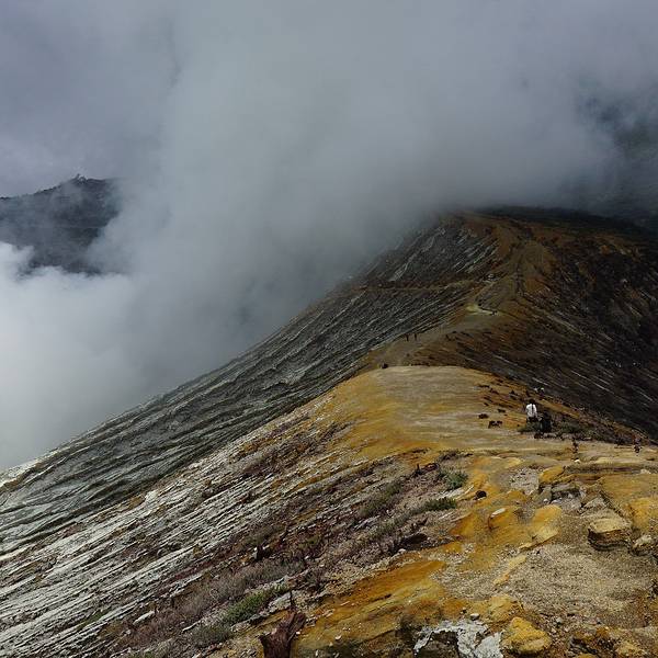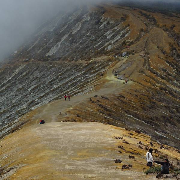 伊真火山以富含硫磺而著称,硫的纯度极高,当火山喷发时会形成大量蓝色的岩浆,宛如地狱之火喷薄而出,我们称之为“地狱蓝火“,想要一睹其惊艳,也是需要极大的毅力。因为只有夜晚才能看到蓝色火焰的奇观,我们到达Paltuding营地后到火山口约需4小时左右,整条徒步登山道非常原始和陡峭,山路越往下越陡峭,没有显著的标识,只有一条路走到底,更没有什么索道和缆车之类的,只能靠自己的双脚和无限的期待支撑你前行的步伐。夜间行走一定带上手电,穿上厚衣服,口罩或防毒面罩更是必备的,沿途尤其是快到火山口时硫磺的气体四处弥漫,熏得人睁不开眼。切记走路不拍照,拍照不走路。
