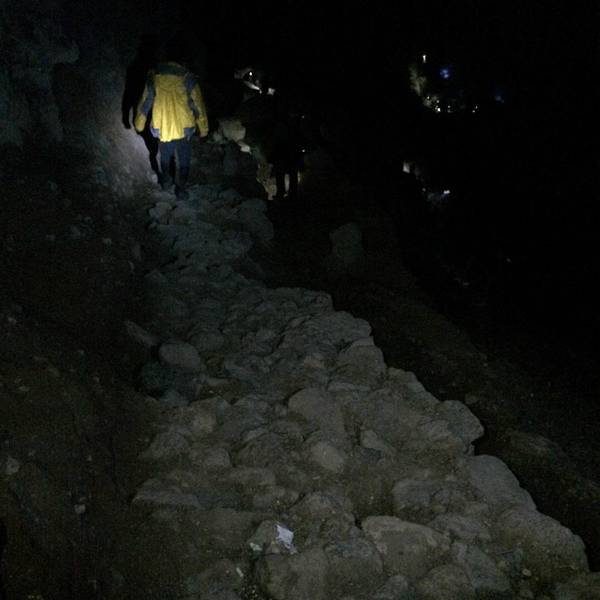 看火山的蓝色焰火就是要夜爬,晚上12点,闹钟响了,依依不舍告别软软的床铺,向火山出发了。在酒店下面集合,搭乘吉普车前往Paltuding营地再徒步登山。
