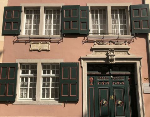 贝多芬故居位于波恩城北部的波恩巷20号,这是一幢两层楼的粉色民居,很不起眼。1767年贝多芬的父母迁居于此,3年后贝多芬在此出生。1889年,这里被改成故居博物馆,是当今世界上有关贝多芬生平的较大的收藏馆。贝多芬故居设有12个展厅,展厅的展品是从150多个原始文献材料中精心挑选出来的文物:如贝多芬各个时期的画像,他的亲人、老师、朋友和他生活环境的画作、他的作品手稿,他使用过的乐器等。按时间顺序将贝多芬的一生娓娓道来。其中交响乐第6号作品《田园》、钢琴奏鸣曲《月光》等乐谱,对于古典音乐迷是不可错过珍品。