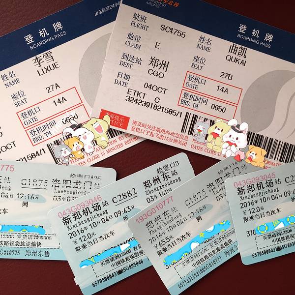 我们的第一站是洛阳,所以要从新郑飞机场到郑州东站坐高铁。虽然是十月一,但丝毫不用担心堵车,因为有城际列车。和高铁一样的东西,飞快的就送到东站了,当身边朋友都在感慨堵车的时候,我们…只有满满的庆幸。...我们的第一站是洛阳,所以要从新郑飞机场到郑州东站坐高铁。虽然是十月一,但丝毫不用担心堵车,因为有城际列车。和高铁一样的东西,飞快的就送到东站了,当身边朋友都在感慨堵车的时候,我们…只有满满的庆幸。城际列车,很赞很赞城际列车,时刻表票。到达
