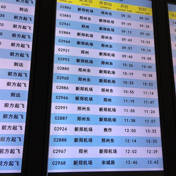 - 我们的第一站是洛阳,所以要从新郑飞机场到郑州东站坐高铁。城际列车,很赞很赞。城际列车,时刻表。到达