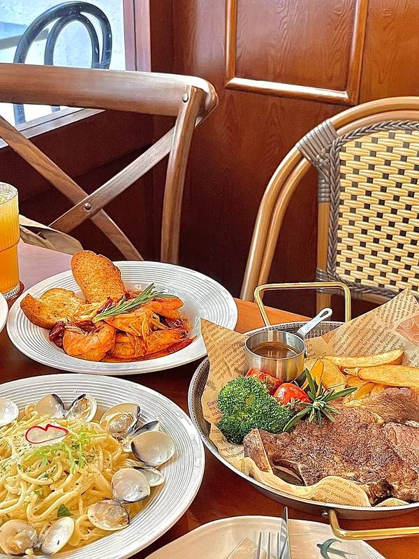 AMOUR禧樾终于来我大青秀区了~法式复古风的氛围感直接被拉满100 100出头的双人餐 狠!哇!塞!啦!战斧牛排@鲜嫩多汁,黑椒汁入味油浸蒜香虾 肉质细嫩、厚实大只情侣、姐妹来用餐、约会都很合适