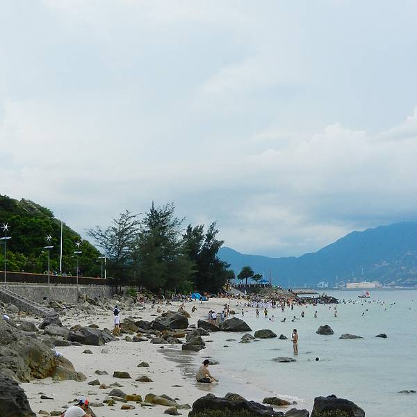 这一段海岸都是石头,适合摄影。这里没有太多的工业,海水没有受到污染,风景秀丽,海风吹来更是阵阵清凉,一点也不像是夏天。杨梅坑这一片海岸很长,除了刚才的石头海岸,也有几片沙滩,游人很多。这里并不是正式对外营业的沙滩,所以没有救生员,也不收门票。这里的沙子是极细的白沙,感觉不到颗粒感,非常柔软。在礁石之间,有不少人似乎在寻找什么,也许能挖到海鲜。 展开