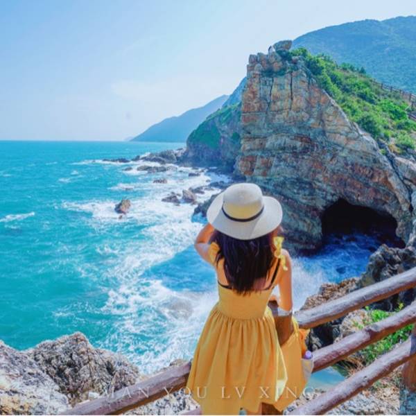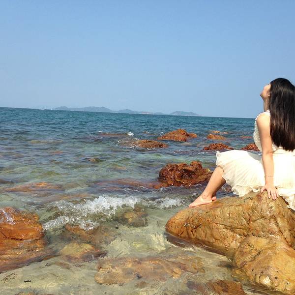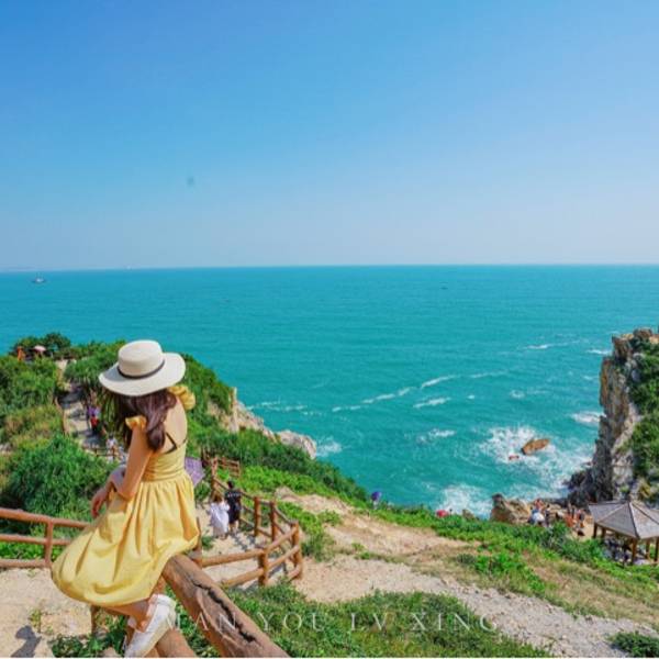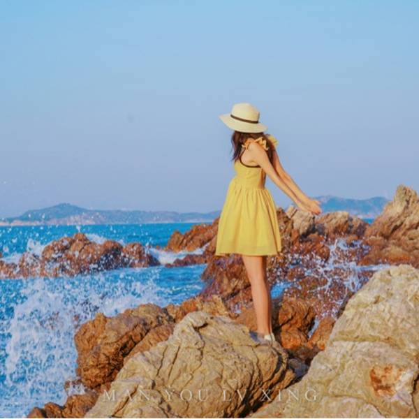 碧海蓝天,最好的状态是把自己当成风景的一部分!建议着姜黄色或者白色裙子,长款优雅范,短款俏皮风,长裙的话有点不方便,台阶比较多!