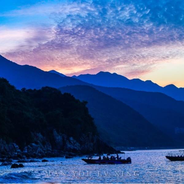 “从杨梅坑往东,是一条长五公里的海岸线,右边是连绵的七娘山脉,左边是美丽的大亚湾,在海岸线的尽头,还有山海合一的鹿嘴山庄。”