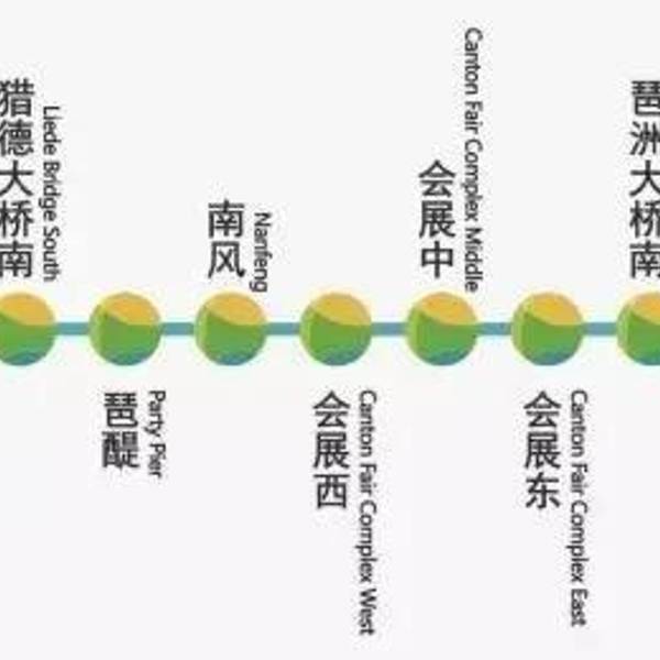 这条线是从广州塔到万胜围:沿途会历经琶洲大桥,琶提酒吧街,琶洲塔,会展中心,亲水公园等景点,广州最美的珠江一线江景完美呈现。而且每部车都有不同的主题,非常有趣,每个主题的车厢都非常漂亮。站台也非常特色,镶嵌着彩色玻璃,傍晚的余霞辉映下,更加美得无话说,站台旁还盛放着各式的花朵。