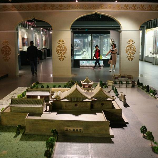 宁夏博物馆位于银川市金凤区,整个建筑平面呈“回”字型布局,贴应了宁夏回族自治区的“回”字。外墙装饰所运用的迦陵频伽、力士志文支座等建筑构件形象,以及四个大门使用的装饰图案,这些都是宁夏历史文化遗存的代表,具有鲜明的地域特色。博物馆共有四层,其中地面的三层对普通游客开放。 博物馆的一层是观众服务厅和临时展厅。这里还有名为“石刻史书”的岩画展厅,进入展厅你就如同进入了一个远古时代。一般游客都喜欢去贺兰山岩画内游玩远古的岩画,但在宁夏境内有很多地方都有岩画,这些地区很多都是游人罕至、交通不便。而在这个展厅内,游客可以近距离接触更多的宁夏岩画。 博物馆的二楼是“宁夏通史展厅”,也是博物馆重点游览的区域。西汉错金银铜羊、唐代胡旋舞石门扇、西夏鎏金铜牛、人像碑座、凸钉玻璃碗等镇馆之宝都位于二楼。此外游客还可以在这里看到“凉州重修护国寺感通塔碑铭”的拓片,拓片上的西夏文比汉字更像方块字。 博物馆的三楼是“回乡风情展”,展出的藏品以史籍和各种《古兰经》珍藏为主,是游客了解穆斯林文化和伊斯兰历史的好地方。 博物馆为游客提供收费讲解服务,在博物馆问讯处的柜台上,摆放着免费的《博物馆导览图》、《展览介绍》等,游客可以自行拿取。