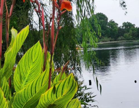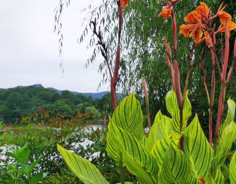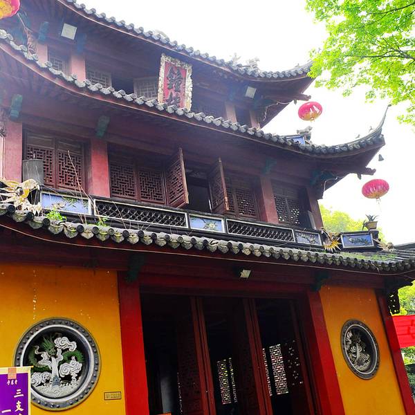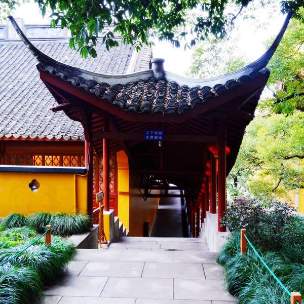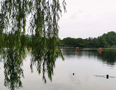 寺院的左侧隔壁就是景色宜人的太子湾公园,对面就是西湖景区之一的苏堤。