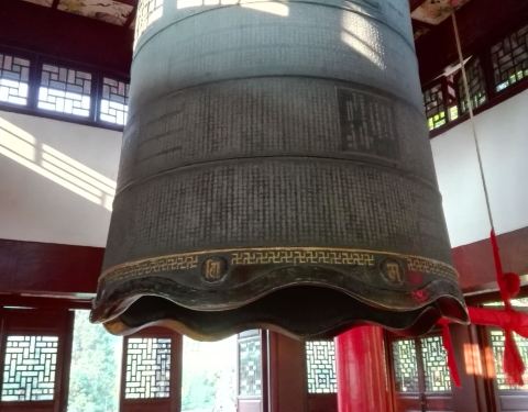 敲净慈寺内青铜钟祈福许愿,西湖十景之一。