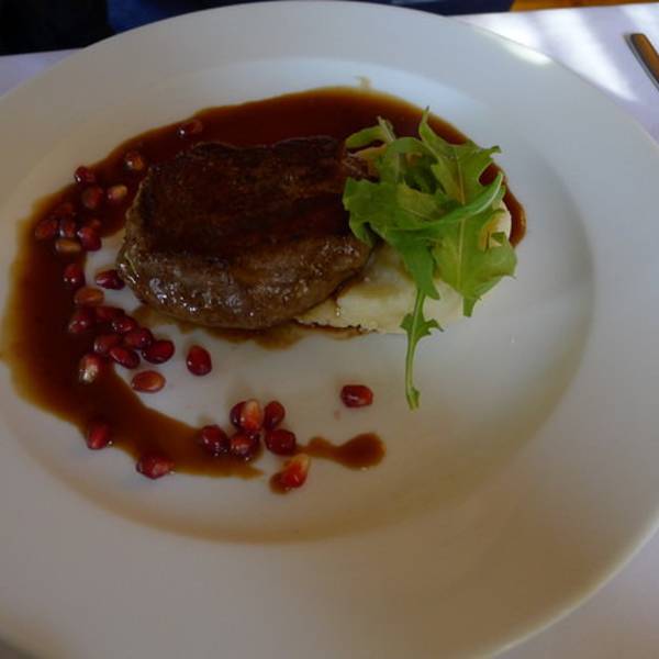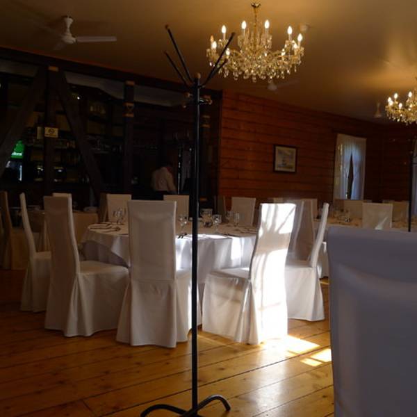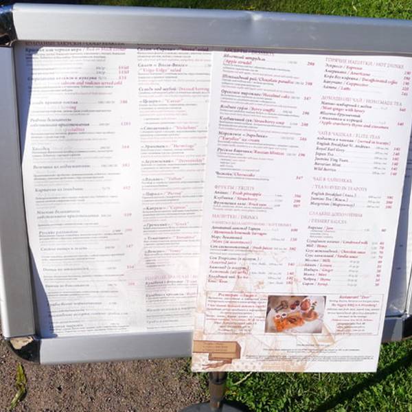 餐厅是一栋古典的木质建筑,掩映在下花园的树影绿地之中,给人以田园牧歌般的诗意。提供标准的俄罗斯正餐,包括牛排、鲱鱼和俄罗斯红菜汤等,餐厅也提供非常优质的红酒。不过由于地处景区,菜品价格整体高于周边地区。