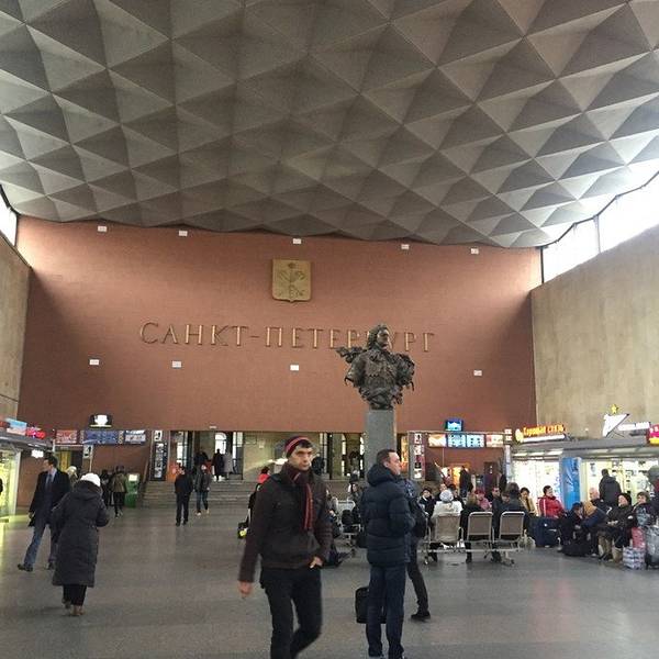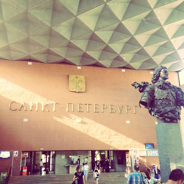 圣彼得堡这个火车站叫莫斯科火车站,站前有个高耸的柱子,上面有五角星,是这座悲伤城市的纪念。很远就能看到。话说圣彼得堡真是一座命途多舛的城市,它的历史读起...路上只停靠了2站,每站1分钟,就到了圣彼得堡。