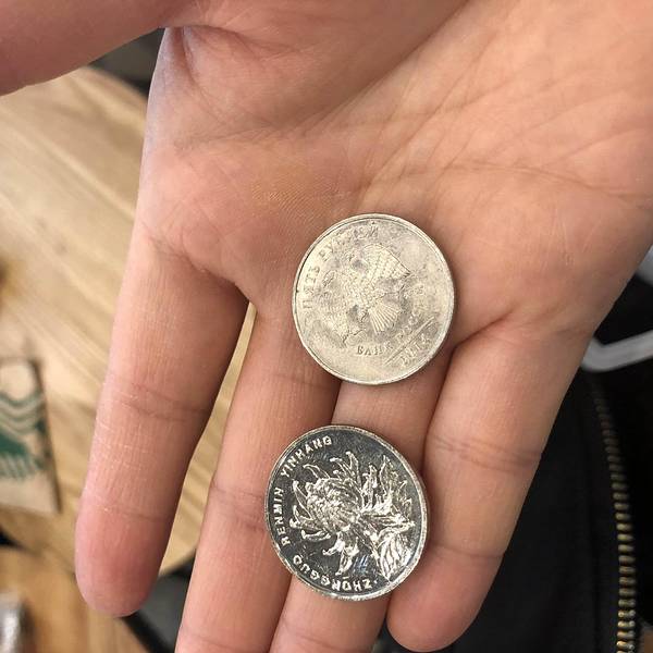 我把人民币1元的当做了他们5元的支付了,服务员提醒了下。