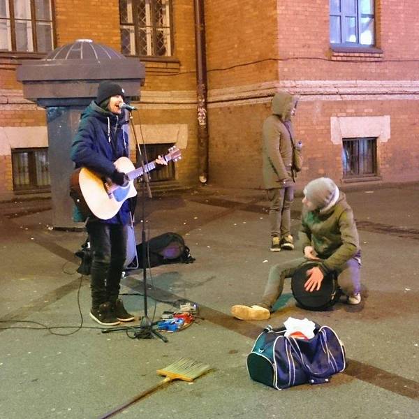 从圣彼得堡返程莫斯科,乘坐的是夜晚的长途慢车,在圣的最后一小时,最后看看这座城市。夜幕降临,车站旁边的地铁站出口开始有街头艺人摆起摊来展示自己的才艺。