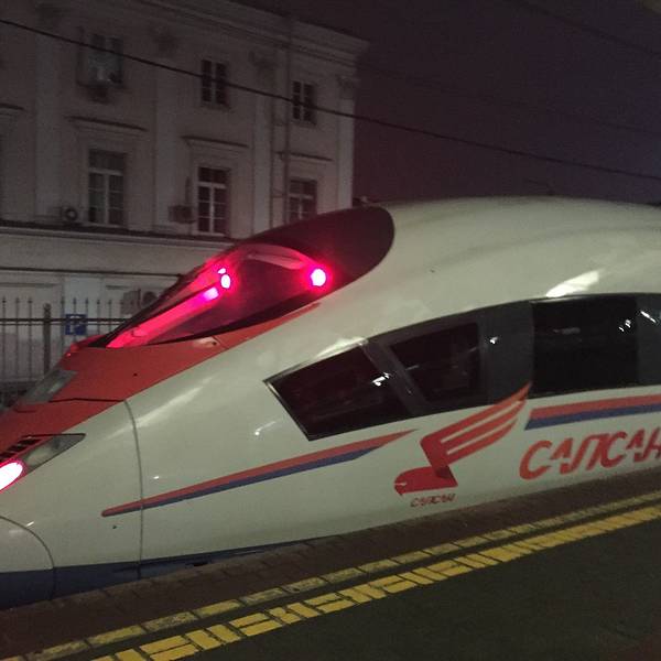 俄罗斯境内运营的高铁线路主要有两条,莫斯科--圣彼得堡,莫斯科--下诺夫哥罗德,还有一条是圣彼得堡--赫尔辛基,好像是芬兰铁路运营的。莫斯科与圣彼得堡之间的公路距离是700多公里,飞机航程是1小时30分,高铁平均用时4个小时。当时虽然机票有特价票,价格比高铁还要便宜些,但考虑到机场距市区远,还要提前到达办理登机手续等等,再加上想体验一把俄罗斯的火车,决定两城间选择高铁往返。