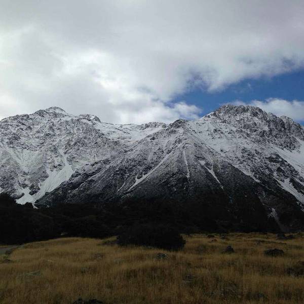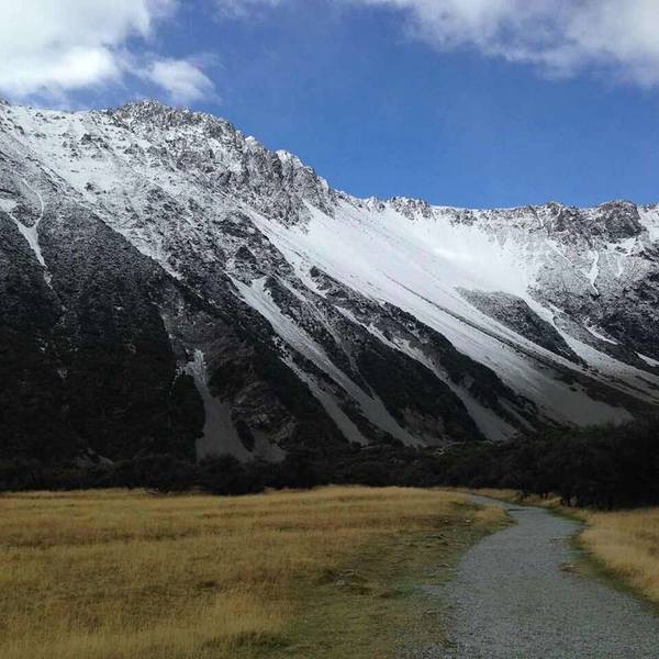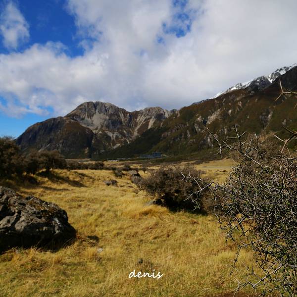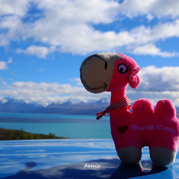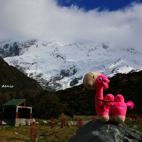库克山国家公园距牧羊人教堂约60分钟车程,从胡椒蓝水精品酒店左转,一路向西,行驶到普卡基湖源头的丁字路口右转,然后沿蔚蓝的普卡基湖在银山毛榉林中一路蜿蜒穿行,这片区域是新西兰西南部世界遗产区,由韦斯特兰国家公园,亚斯派灵山国家公园,及峡湾国家公园共同组成,路的尽头就是库克山国家公园营地,一路的美景就像一部风光大片,蓝天、白云、雪山、碧湖、原野和山林,如此纯净,那种触动心灵的美。在普卡基湖,驼妹出镜亮相,一路上驼妹看了不少美景,待会儿还要跟俺爬爬山,看看雪。我们的小车停在白马山露营地,本来想去村里的加油站,导航却把我们指引到了新西兰最有名酒店-库克山庄酒店,沿村庄转了一圈,还是没有找到加油站,干脆爬山去喽。