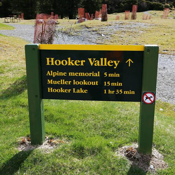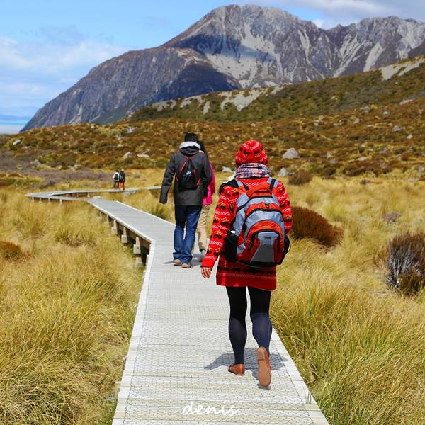 这儿有5条最佳短途步道,分别是州长丛林步道、鲍恩丛林步道、格伦科步道、啄羊鹦鹉角步道、胡克谷步道,所有这些步道都从库克山村落出发,且拥有绝美姿容的宜人景致。我们选择了公园内最受欢迎的胡克谷步道,一是胡克谷步道相比其他四条步道行走距离长,往返约3~4 小时,更具挑战性,二是途中怪石嶙峋,草甸茂密,经过三处吊桥作为取景拍照的背景也是此行的乐趣之一,