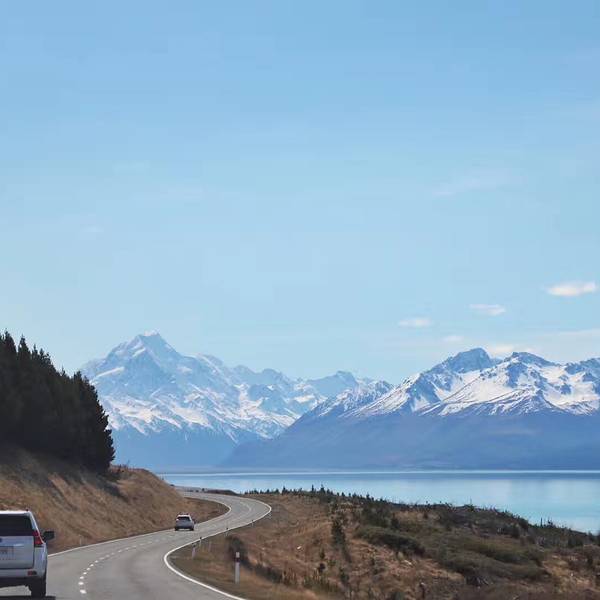 🔸tips:除了胡克谷步道,从twizel到库克山的路上,经过普卡基湖时的路段,是绝美的拍照地(图六)。不论是什么季节走这条路,我都会惊叹原处若隐若现的雪山🏔️和近处的牛奶湖。