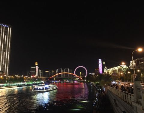 座落在天津古文化街前的海河上,夜晚在这里观赏海河较好的夜景真的是一种享受