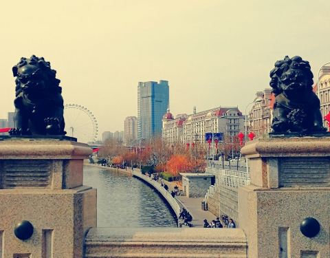 这也是天津海河之上的一个网红大桥,他并不像其他的桥那样历史悠久,或者是狭窄,这座桥自己的特色就是它是由狮子组成,每个狮子都是形态各异,表情不一。让你看起来感觉相识一副艺术品。另外在桥的另一头下面就是天津海河有名的冬泳集合点,夏天的时候你还感受不到这些人的厉害,在冬天的时候,他们每个人光着身子下水游泳,真的是了不起。