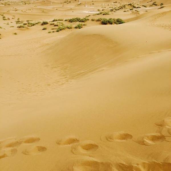 大家不要光脚进沙漠,沙子很烫脚,而且边缘地区有很多扎人的草,走进去了以后要拍照了再拖鞋!
