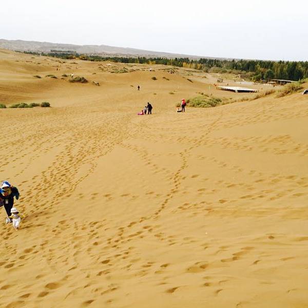 这是离市区很近的沙漠啦,从乌鲁木齐坐一小时动车到吐鲁番,再打个车十几分钟就到沙漠景区了,蛮方便的!