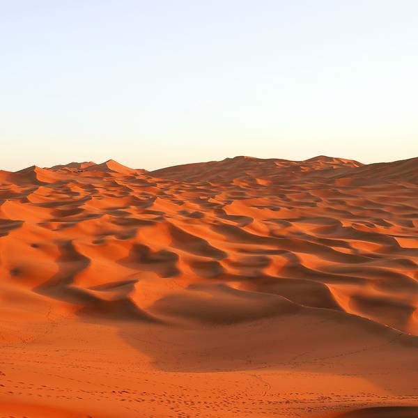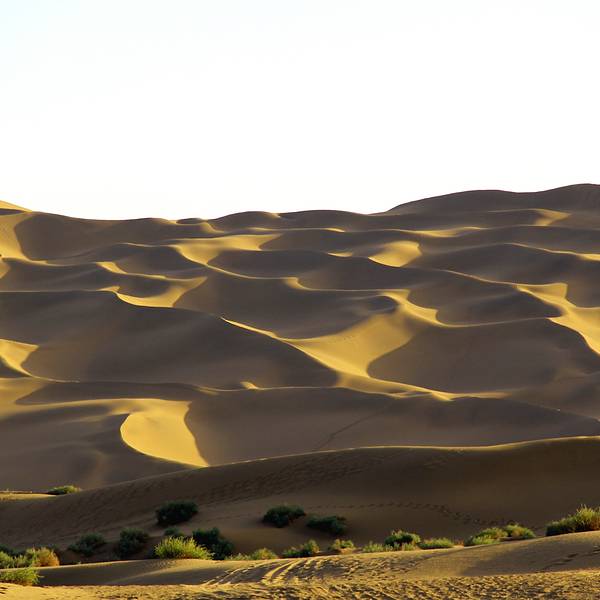 库木塔格的沙子较为细软,并且由于地域辽阔,总能发现许多未有踏足印迹的沙漠角落,在临近黄昏时,景区温度较低时,可以毫无顾虑地赤脚行走于沙漠之中而不会有炙热感。