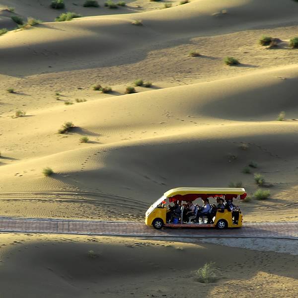Tip:景区范围较广,在区间车上建议可选择2号区间车游览,而1号区间车路程较短,可选择步行游览。沙漠景区处于炎热地带,因此建议在游玩时间最好选择清晨或黄昏时间段进入。