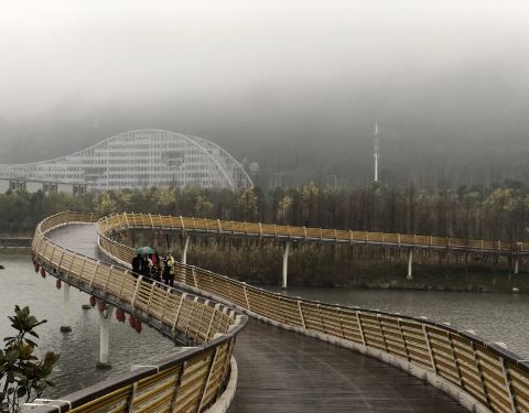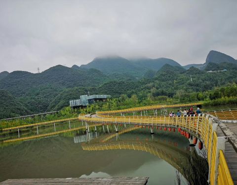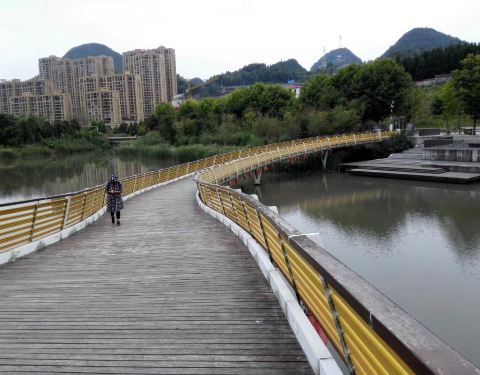 ...彩虹步道,真是一道亮丽的风景线,从湖的一侧横跨到另一侧,宛如一道彩虹飞架,置身其中,就如在仙境- 这次到六盘水,无意间发现这个地方,真的是很震撼,这个湿地公园,面积大,依山而建,利用原有地势,层层叠叠,形成了多个水体,而又相互联通。水质清澈,水鸟众多,空气清新。沿湖而建的健身步道,功能设施齐全...- 这次到六盘水,无意间发现这个地方,真的是很震撼,这个湿地公园,面积大,依山而建,利用原有地势,层层叠叠,形成了多个水体,而又相互联通。水质清澈,水鸟众多,空气清新。沿湖而建的健身步道,功能设施齐全,特别是那个跨湖傍山的彩虹步道,真是一道亮丽的风景线,从湖的一侧横跨到另一侧,宛如一道彩虹飞架,置身其中,就如在仙境。 展开