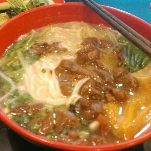 【About】这家店出名的其中一个原因,就是香港影星蔡淇俊开的店,据说他经常在店里的,有兴趣可以过来看看真人哦。不过我吃过几次也没见到他人。 【Location】人民路岭南天地对面,坐公交车的话在人民路下车,大家乐往电大方向走半分钟就到了。 【Service】服务态度还是可以的,店里也挺干净,不过个人觉得墙上面那一排吊在半空的云南娃娃有点诡异。。。还有就是,这家店人气还挺旺的,有时候得坐到门口等位置。食物价格也不贵,人均25就可以吃得饱饱的了。 【Food】过桥米线的话不太推荐哦,因为我一直觉得过桥米线这东西就是要滚烫滚烫的汤底,然后一股脑把所有东西倒下去的,然后他家的汤底一点都不烫,面都吃完了,倒下去的鹌鹑蛋都还没熟,不过汤底还是挺清的。推荐炒饭,好大一碟,干贝炒饭好香,不过略咸,还有就是值得一赞的是例汤,上次配的例汤是奶油蘑菇汤,比其他西餐厅做的都好喝,而且喝完一大碗都不觉得腻。