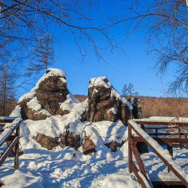 话说我们冷的不行,他们也就穿了一件外套,比我们抗冻多了。说好的帅气甩头呢,此时此刻感觉自己像是一个女疯子。这里有两只熊的雕像,看上去好呆萌。 展开
