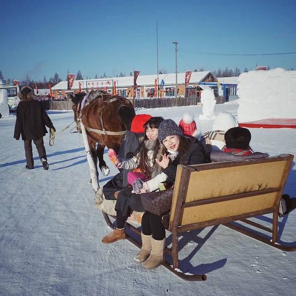 外面已经是零下三十几度,为了有一组接地气的游客照,我也是不容易啊三个小伙伴嫌冷,只有我一人穿了。