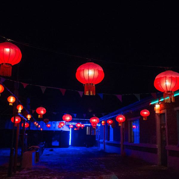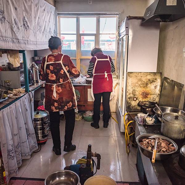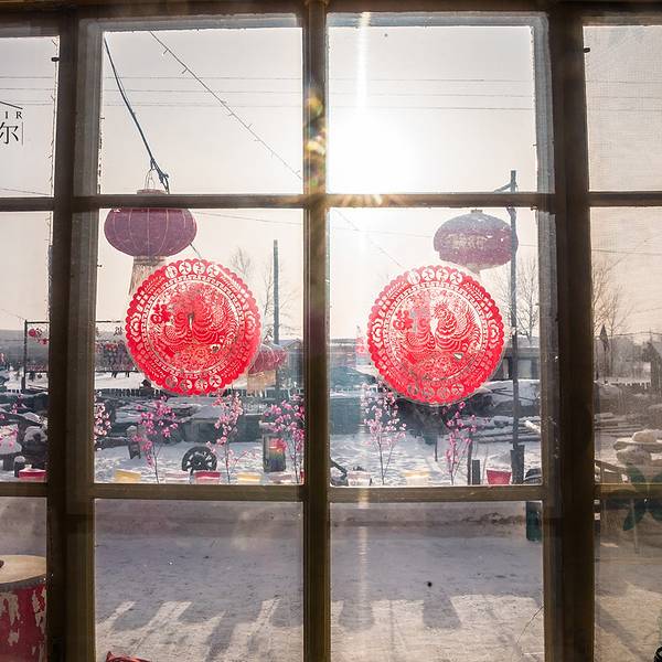 客栈阿姨在做饭,我们几个在餐厅里踢毽子,门口挂着大红灯笼,真的有种在东北过年的感觉。