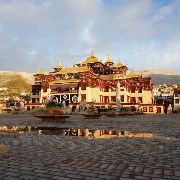 强烈的高反作用下 几乎零睡眠, 那不如早早出发吧。 夜里下了雪, 高原草垫披上了一件雪白的外衣。 这样的日出,此生,也许唯一。 无论乌云有多么的厚重, 我一直在等待阳光穿透黑暗的那一刻。 当第一束光照在寺庙之上,升起一片金黄的 那一刻。。。 不只是感动