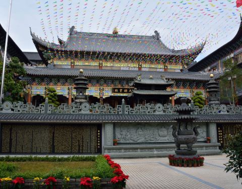 是一座历史悠久的历史的古寺庙,寺庙依山望海,景色秀丽迷人,复建的大雄宝殿等建筑,规模宏伟壮观,...