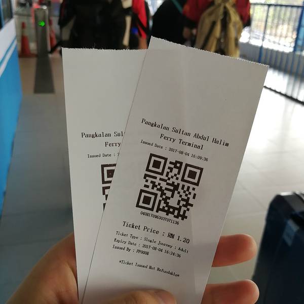 ①我们是从KL坐车到马六甲汽车总站的时候就顺便买好了第二天出发去槟城的车票,车站里有很多售票窗,并不是每一个窗口都能买到去槟城的车票,每个窗口上面都会写什么汽车公司,我们买的是Inter City的票,RM50一个人,从马六甲汽车总站到北海Butterworth的,下车后在公交总站里有免费的公交车free bus送我们到北海码头Butterworth Jetty,然后买船票,RM1.2一个人,20min左右到达槟城码头。