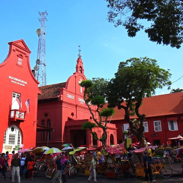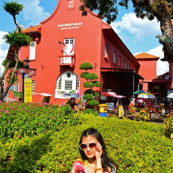 本来很早就起床,结果轮流跑厕所,直到10点才出门,为么我们对印度食物就那么敏感呢? 依旧退房后把行李寄存到酒店,开心的坐着小地铁出发了。经过1站在HangTuah换乘黄色线到Bander Tasik Selatan.。如果实在找不到,就跟着大部队走吧。 值得注意是在HangTuah换乘的时候,不是每班车都到BTS汽车站,如果这班到Ampang,那么下班才是正确的。当然如果你乘错了也不要担心,在2站后的Chun Sou Lin下车,等下一班就一定是了,同方向。 到达BTS汽车站,买到Malaka总站就对了。之前看其它攻略说不要买往返,怕没赶上时间,浪费车票,或者时间很赶之类的,这样我们就很信任的特地不买往返,但后来实践发现我们真是错大了。 所以说看攻略千篇,不如自己实践一次。 我的建议是:1、如果不确定回程时间,那么可以买单程,并且回程的时候一定要提早到汽车站去买票,不要玩到走的时候才去,遇上周末,肯定没票。2、如果确定回程时间,那么就买往返,回的时候可以玩到点,然后放心去车站乘车。3、即使赶不上时间,浪费一两张票,那也总比只有选择出租节约N倍的钱。 到达马六甲汽车站之后,坐17路公交到红屋就行了,很醒目的建筑,不怕做错站。 一看到马路两边彩色可爱的小屋,我们俩就开始激动,当到达红屋,看到这栋荷兰式,顿时兴奋起来,当然,其中也包含了非常多的中国元素。